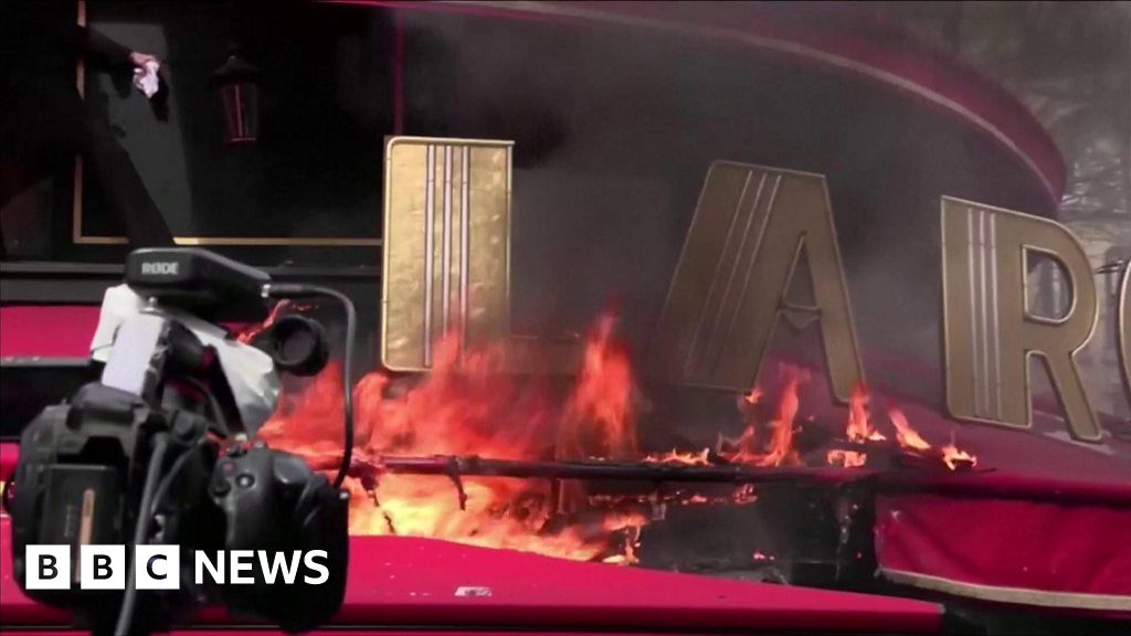 France pension protests: One of Macron’s favourite cafes in flames