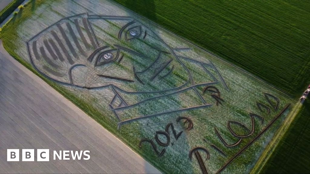 Italian land artist Dario Gambarin has used a tractor to create a portrait of Pablo Picasso on wasteland in Castagnaro, Verona.