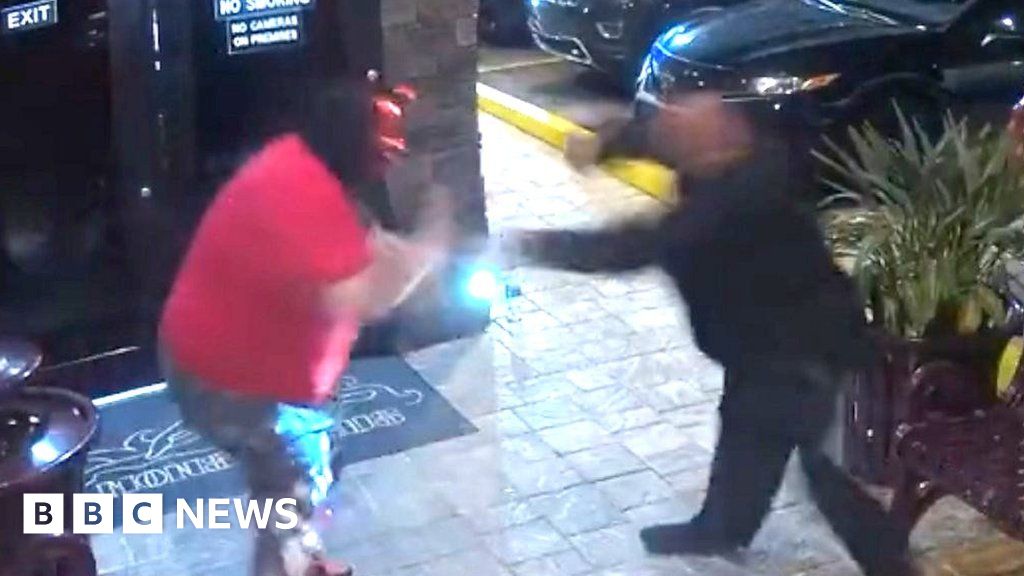 An armed man wearing a devil mask was stopped from entering a strip club in Tampa, Florida, on Sunday.