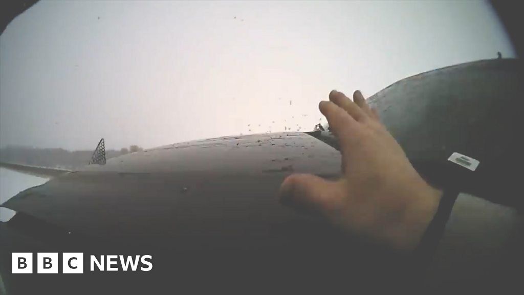 Moment police officer hit by car while helping driver on Iowa motorway